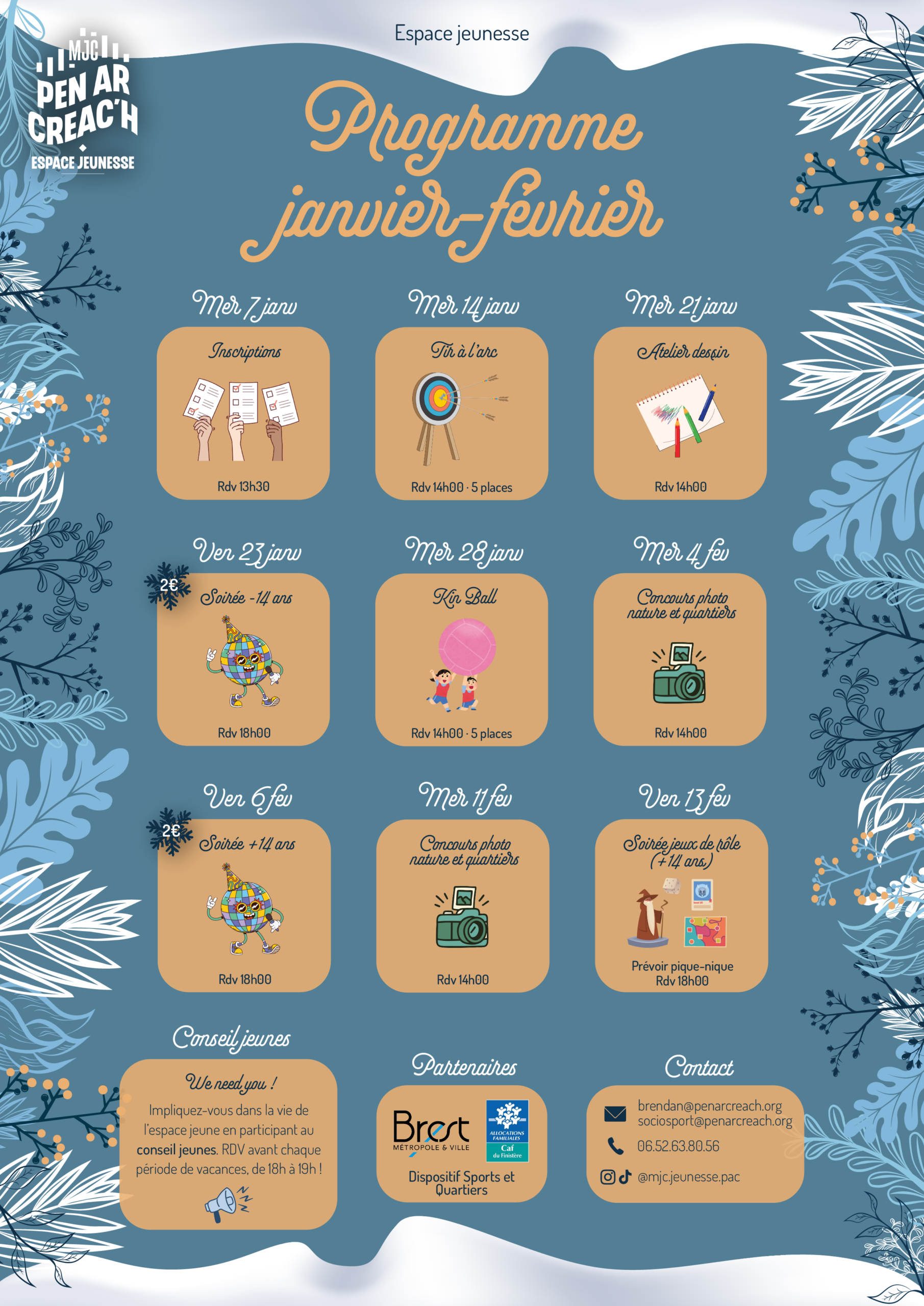 Découvre vite notre programme d’activités pour les mois de janvier et février à la Maison Pour Tous de Pen Ar Créac’h !