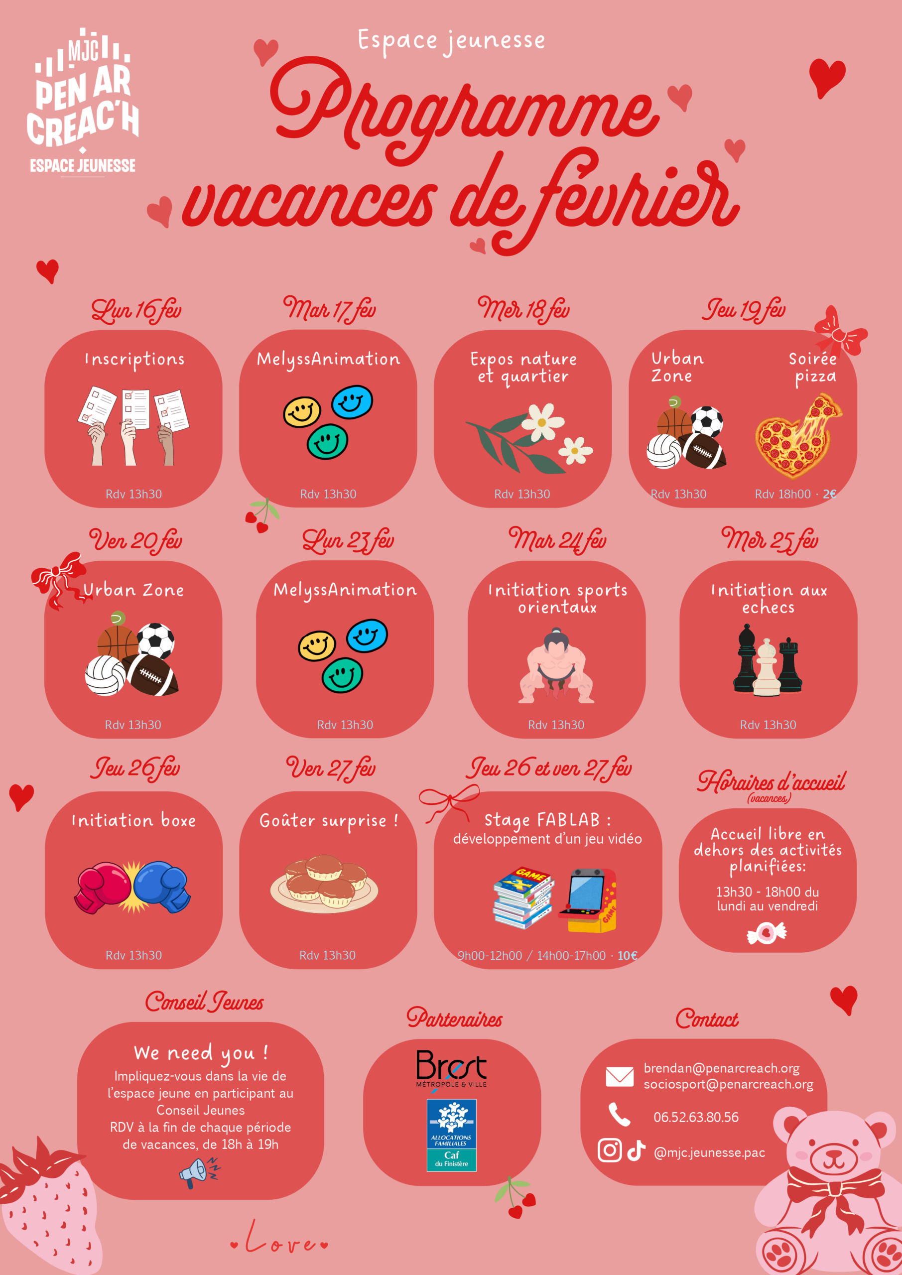 Découvre vite notre programme d’activités pour les vacances de février à la Maison Pour Tous de Pen Ar Créac’h !