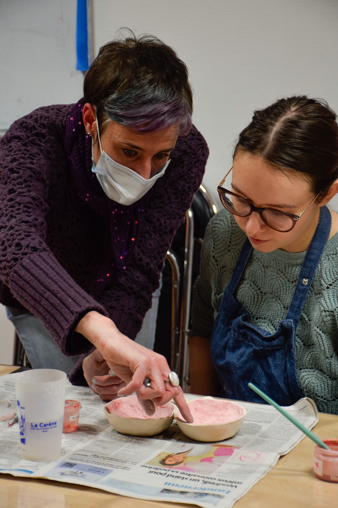 Formée et accompagnée par différents enseignements artistiques à Brest, elle façonne des pièces nécessitant plusieurs cuissons, parfois émaillées, parfois laissées plus brutes. Ses bijoux en céramique, inspirés de motifs de dentelles et de textures délicates, sont minutieusement découpés, émaillés et assemblés, rendant chaque création unique.