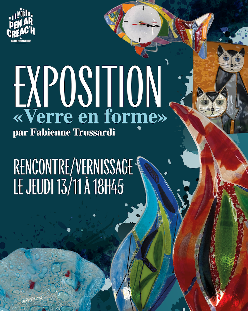 La MJC de Pen Ar Créac’h vous invite à venir rencontrer l’artiste Fabienne TRUSSARDI à l’occasion du vernissage de son exposition « VERRE EN FORME ».